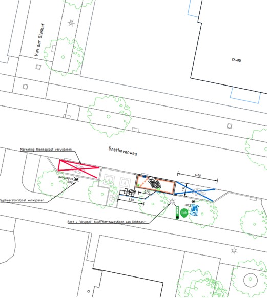 23. Beethovenweg, ter hoogte van nummer 125 (1x, verplaatsen van de parkeerplaats ernaast);