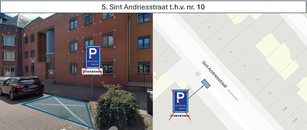 20. Sint Andriesstraat, ter hoogte van ingang parkeergarage Beestenmarkt (1x, naast bestaande parkeerplaats voor deelauto’s);