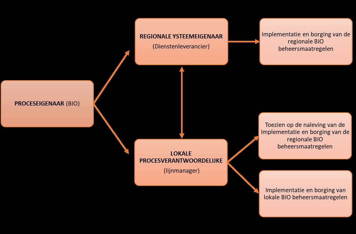 Op de volgende wijze geven we binnen het samenwerkingsverband Drechtsteden invulling aan de rol en verantwoordelijkheden van de proceseigenaar uit de BIO. De rol van proceseigenaar wordt onderverdeeld in een regionale systeemeigenaar (bij de dienstenleverancier) en een lokale procesverantwoordelijke (lijnmanager). Elk hebben ze hun eigen BIO aandachtsgebieden en verantwoordelijkheden: