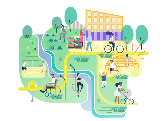 Vergroten van de toegankelijkheid en gebruikswaarde van parken en het realiseren van gezonde routes en plekken in de stad die het aantrekkelijk maken om te ontmoeten en te bewegen;
