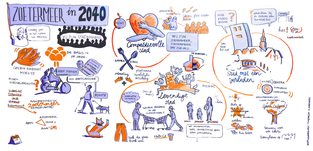 Toch zijn we erin geslaagd om met een brede groep belanghebbenden een goed gesprek te voeren over de toekomst van de stad. Dit varieerde van de dialoog met ‘stadmakers’ tot ‘Zoetermeerders in gesprek’: een brede vertegenwoordiging van inwoners met belangstelling en ideeën over Zoetermeer. Op diverse inhoudelijke thema’s vonden gesprekken plaats met professionele partners, zoals de zorgsector, het onderwijs, Stedin, waterschappen, HTM en MRDH. Vaak heeft de dialoog geleid tot inspiratie en soms ook tot concrete voorstellen die zijn opgenomen in de RSZ.