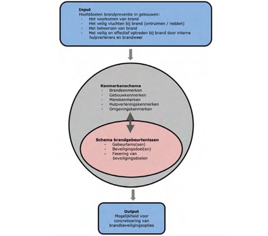 Uit het kenmerkenschema blijkt dat de verschillende aspecten elkaar beïnvloeden. De mens staat echter centraal in het samenstel van gebouw en brandveiligheid. De mens is hierin zowel de veroorzaker als de drager van risico’s. Als veroorzaker spelen zij een rol bij het ontstaan van brand. Zoals bijvoorbeeld door brandstichting, maar ook het nalaten van onderhoud van installaties kan ertoe leiden dat er brand ontstaat.