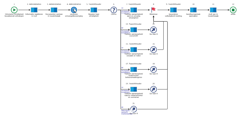 Als tijdens juridische procedures of tijdens het toezicht op de bouw blijkt dat bepaalde onderdelen van vergunningen extra aandacht behoeven, wordt dit teruggekoppeld aan de casemanagers. Op- en aanmerkingen kunnen verwerkt worden door aanpassing van de standaardbrieven, procedures en/of checklists. Daarnaast zijn de procesbeheerders verantwoordelijk voor het evalueren en monitoren van de bestaande processen, om op deze wijze continu de kwaliteit en efficiënte te borgen. Dit doen wij door voor elk proces een procesbeheerder en een proceseigenaar aan te wijzen. Wanneer de procesbeheerder constateert dat het proces niet loopt zoals verwacht, schakelt hij op naar de proceseigenaar.