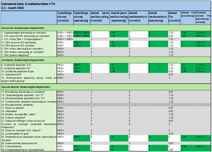 Volgens de Verordening VTH gaan we ervan uit dat we met onze uitvoeringsorganisatie voldoen aan de Kwaliteitscriteria. In het geval we hieraan niet voldoen, moeten we uitleggen hoe we hieraan denken te voldoen, dan wel uitleggen waarom we hier niet aan voldoen.e. Deze externe medewerkers voldoen allemaal aan de Kwaliteitscriteria.