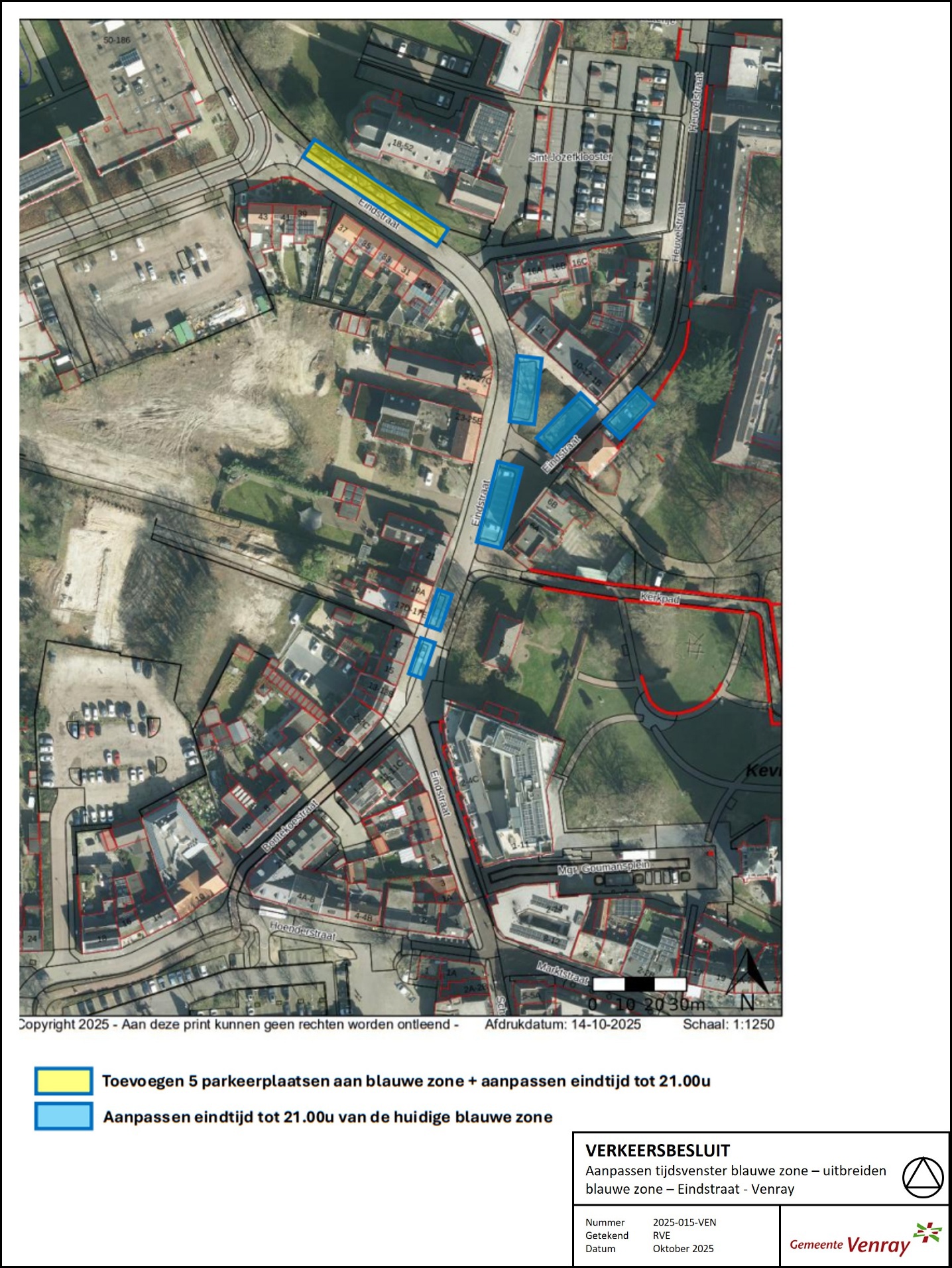 Verkeersbesluit – Aanpassen tijdsvenster blauwe zone – uitbreiden blauwe zone - Eindstraat - Venray