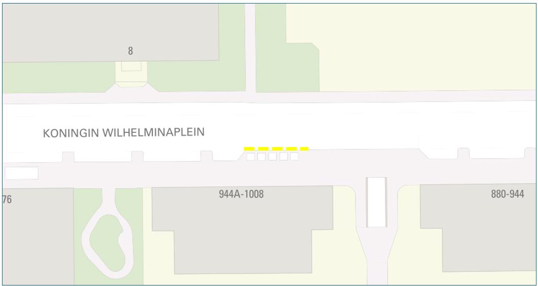 Door het aanbrengen van een gele onderbroken streep, conform Artikel 24, lid 1, onderdeel e van het RVV 1990, in te stellen: een parkeerverbod direct langs de ondergrondse inzamelcontainers op het Koningin Wilhelminaplein, ter hoogte van perceelnummers 6, 834 en 982.