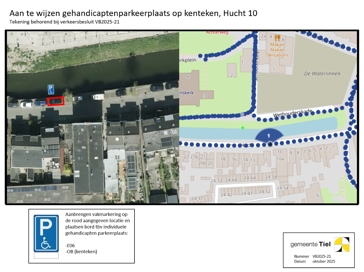 Verkeersbesluit voor het aanwijzen van een gehandicaptenparkeerplaats aan Hucht nabij huisnummer 10 te Tiel