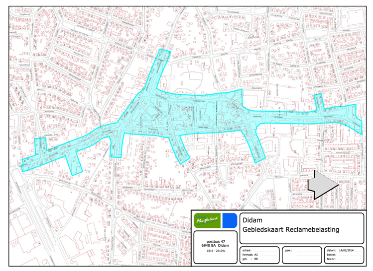 De verordening reclamebelasting 2026 is van toepassing in het centrum van Didam, zoals vermeld op de bij deze verordening behorende en daarvan deel uitmakende kaart (bijlage 1).