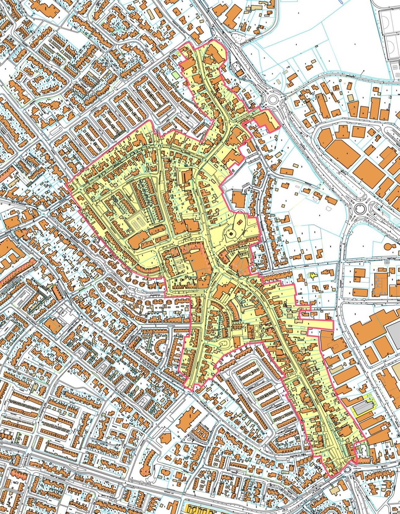 Het gebied waarop de verordening van toepassing is wordt begrensd door de straten als volgt aangeduid: