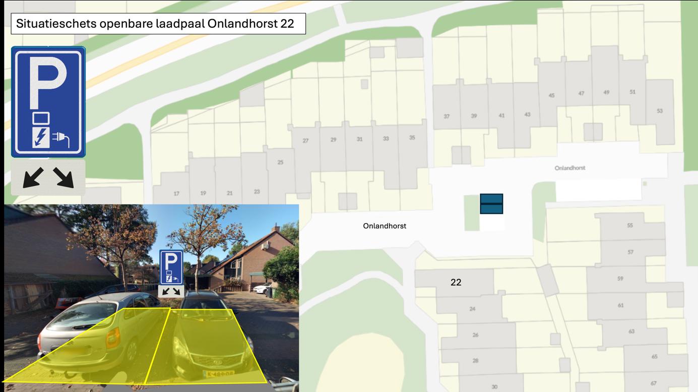 dat op basis van de hiervoor genoemde beleidsregel en de plankaart laadinfrastructuur een geschikte locatie is gevonden voor een laadvoorziening op de Onlandhorst ter hoogte van huisnummer 22;