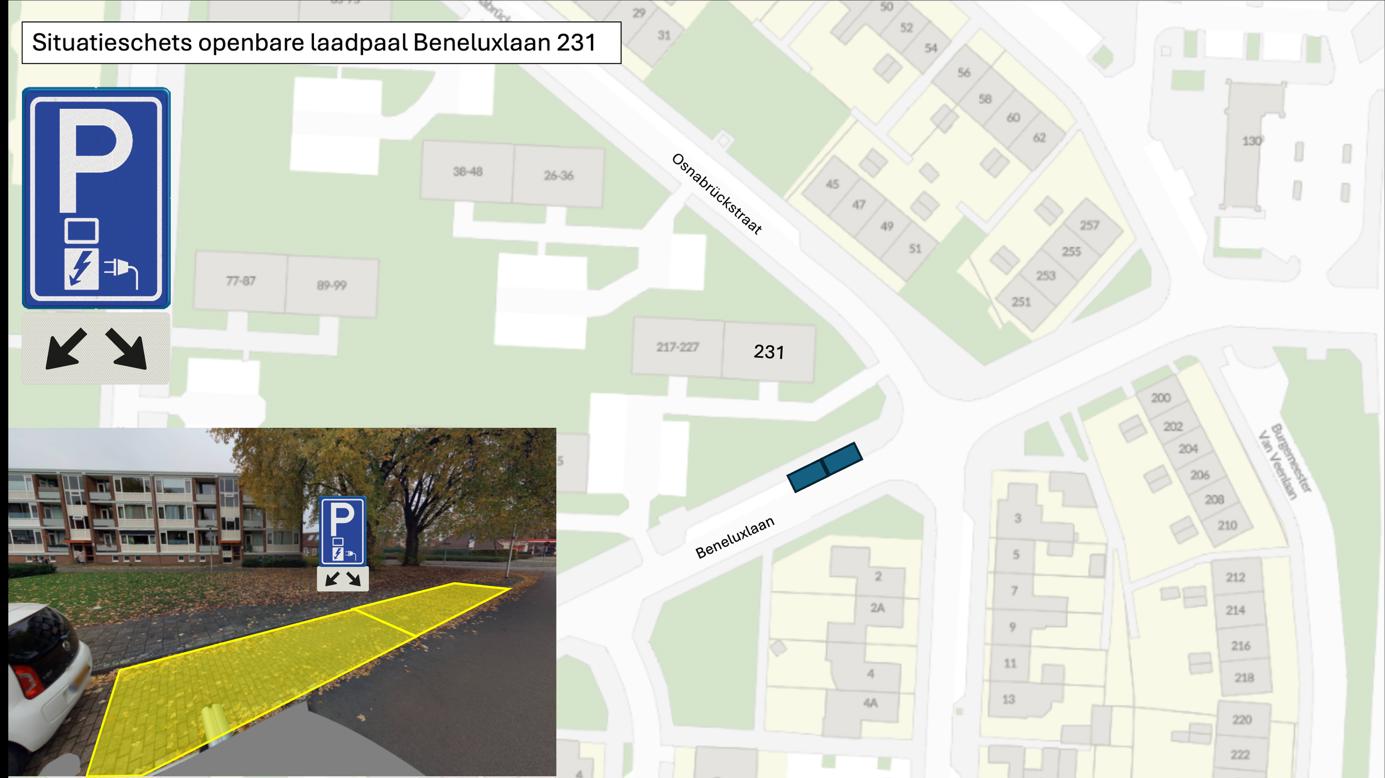 Verkeersbesluit gereserveerde parkeerplaatsen voor opladen elektrische voertuigen aan de Beneluxlaan t.h.v. huisnummer 231 te Enschede