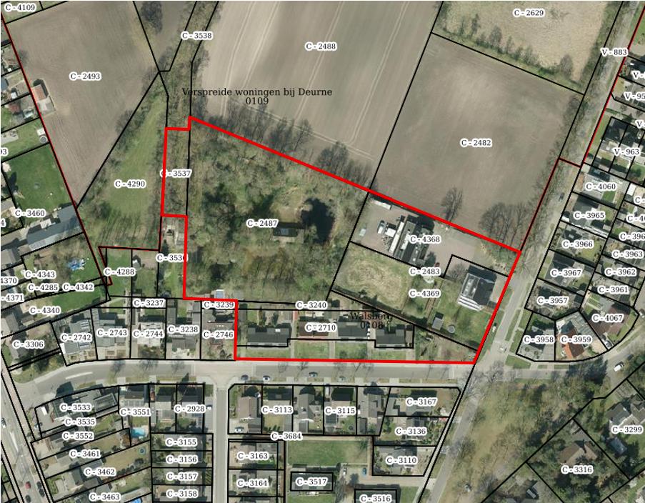 Het plangebied heeft betrekking op de percelen bekend als gemeente Deurne, sectie C, nummers 2487 (gedeeltelijk), 2710, 3240, 3537, 4347 (gedeeltelijk), 4368 en 4369. Het projectgebied heeft een oppervlakte van circa 16.570 m2. In onderstaande afbeelding is de ligging van de locatie weergegeven.