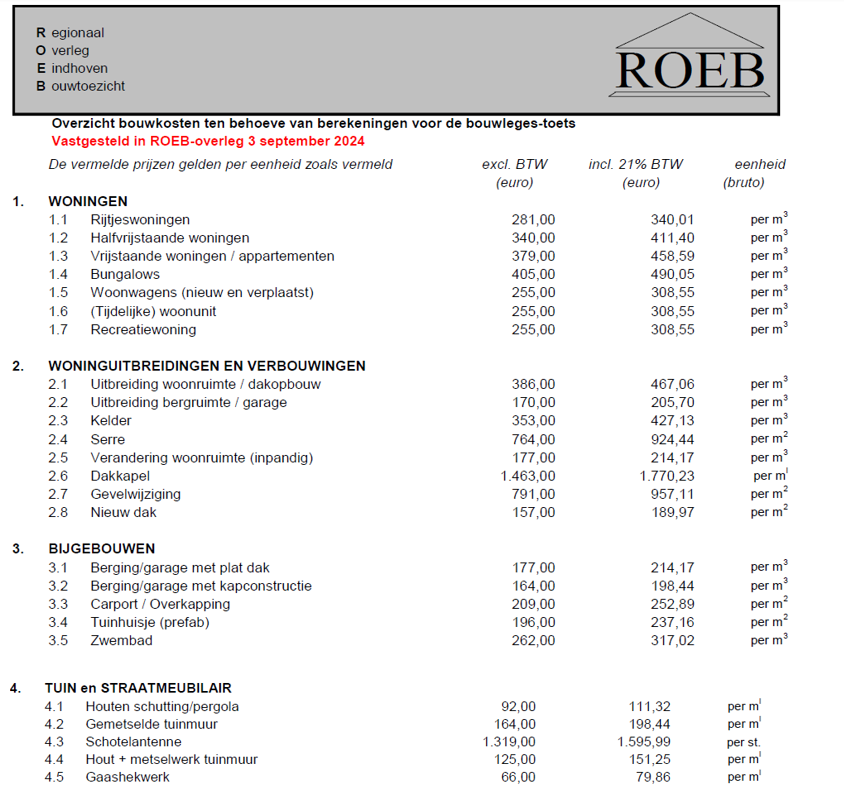 2. in afwijking van onderdeel c.1., indien de bouwkosten ,minder dan € 25.000 bedragen, per behandeling