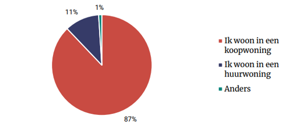 Bijna negen op de tien inwoners (87%) die mee hebben gedaan aan dit onderzoek zijn woningeigenaren. Elf procent van de deelnemers geeft aan in een huurwoning te wonen.
