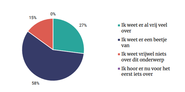In Nederland is afgesproken dat in 2050 gestopt wordt met het gebruik van aardgas. We vroegen de inwoners van de gemeente Best of zij al iets weten over de overstap naar aardgasvrij wonen. Het grootste deel van de inwoners zegt hier een beetje vanaf te weten (58%). Een kwart weet er vrij veel van (27%). Vijftien procent van de inwoners weet vrijwel niets van het onderwerp, maar er was geen enkele inwoner die hier nu voor het eerst van hoorde.