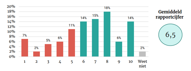 De inwoners is gevraagd een rapportcijfer te geven over hoe zijn aankijken tegen de overstap van aardgas naar een andere duurzame warmtevoorziening, lopend van 1 (negatief) tot en met 10 (positief). Het gemiddelde rapportcijfer dat inwoners geven is een 6,5. Twee op de drie inwoners (67%) geven een positief rapportcijfer (6-10). Daarnaast geeft een derde van de inwoners (31%) een negatief rapportcijfer geeft (1 -5).
