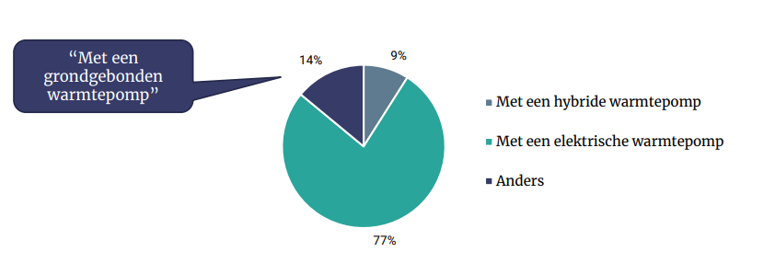 Een klein deel van de inwoners is al aardgasvrij. Deze inwoners verwarmen hun woning voornamelijk met een elektrische warmte pomp (77%). Een vaker genoemd antwoord bij ‘anders’ is het gebruik van een grondgebonden warmtepomp.
