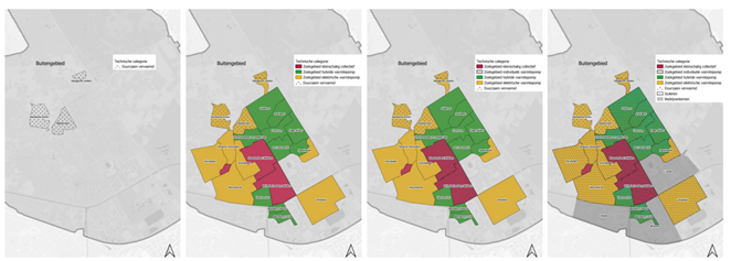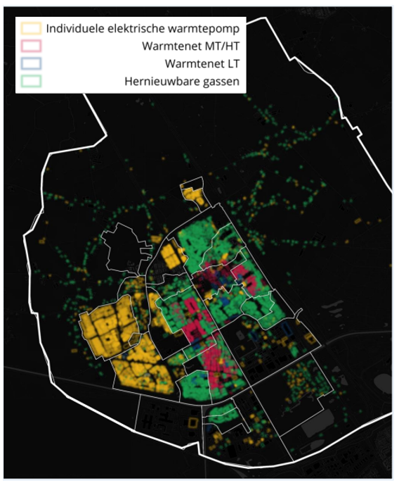 Figuur b4.3: + toevoeging alternatieve meest waarschijnlijke aardgasvrijoplossing per buurt, indien onduidelijk is welke in de betreffende buurt dominant zal worden.