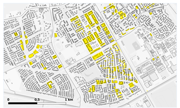 De uitkomst van de analyse is te zien op de kaart in figuur 3.1. Hierop licht met name het centrumgebied op inclusief enkele omliggende buurten –zoals ook bleek uit de conclusies van het aquathermierapport. Daarnaast is een redelijk deel van de zoekbuurten Naastenbesten Wilhelminadorp ingekleurd. Vanwege de locaties van de potentiële bronnen geothermie en aquathermie is het dan ook zinvol om een eventueel grootschalig warmtenet te starten in Wilhelminadorp. Hier komen vraag en aanbod van warmte het meest samen.