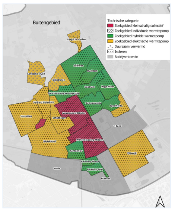 In de Transitievisie Warmte van 2022 zijn Heivelden (deels) en Naastenbest aangemerkt als ‘zoekbuurten’ –de buurten waar als eerst gezocht wordt naar mogelijkheden om aardgasvrij te verwarmen. Daar is in 2023 Wilhelminadorp aan toegevoegd. Voor dit Warmteprogramma is een quick-scan onderzoek uitgevoerd om te beoordelen of dit met een duurzame collectieve verwarming (een ‘warmtenet’) mogelijk is.