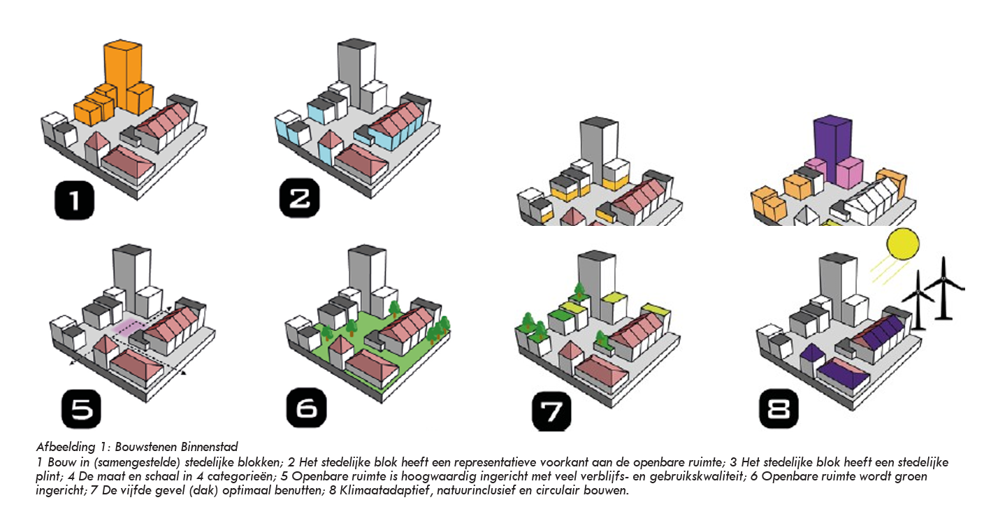 Naast de ambitie en de acht bouwstenen uit de vastgestelde Visie Binnenstad 2040 (sept 2020) is er behoefte aan een toetsingsinstrument in de vorm van een beeldkwaliteitsplan. Dit beeldkwaliteitsplan biedt handvatten voor de initiatiefnemers en een basis voor de gesprekken in de CRK en de stadbouwmeester, voor zover dit initiatieven betreft in een samengesteld bouwblok.