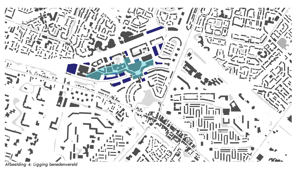 Ongeveer 10 overdekte parkeervoorzieningen aan de randen van het stadshart vormen samen met de toevoerwegen de benedenwereld. Deze benedenwereld toont zich aan de randen van het stadshart open en bloot naar de buitenwereld en is niet ontworpen op beleving maar puur op functionaliteit. Dit levert een onprettige overgangszone op tussen het stadshart en de omliggende buurten.