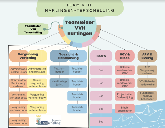 De gemeenten Harlingen en Terschelling hebben de ambitie om te beschikken over een gezamenlijk team VTH. Het uitgangspunt hierbij is dat medewerkers van gemeente Harlingen en Terschelling inzetbaar zijn voor beide gemeenten, hierdoor hoeven de gemeenten het wiel niet opnieuw uit te vinden en is expertise van beide gemeenten uitwisselbaar.