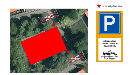 dat voor de veiligheid van de bezoekers de openbare parkeerplaats aan Sint Josephplein deel uit maakt van het evenemententerrein;
