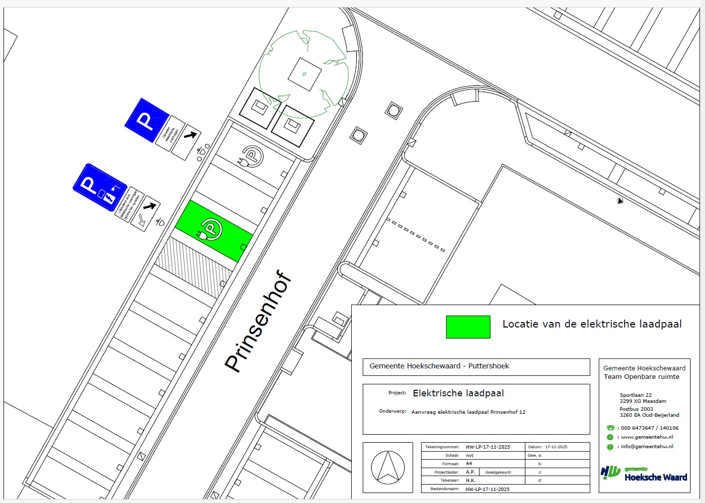 Prinsenhof 12 te Puttershoek (naast de reeds bestaande laadpaal welke aan het eind van zijn capaciteit zit)