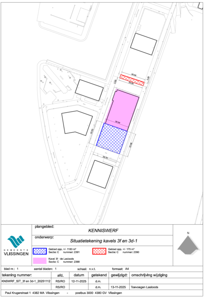 Kadastrale percelen: Gemeente Vlissingen, Sectie C, nummer 2390 (gedeeltelijk) van circa 175 m2 en Sectie C, nummer 2391 (gedeeltelijk) van circa 1.180 m2, hierna respectievelijk te noemen “3d1 en 3f”.