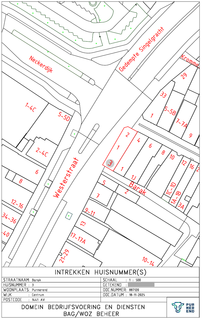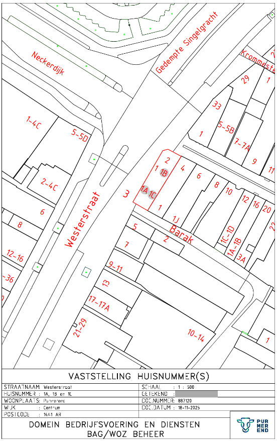 Kennisgeving huisnummerbesluit Westerstraat 1A, 1B, 1C en Barak 3 Purmerend