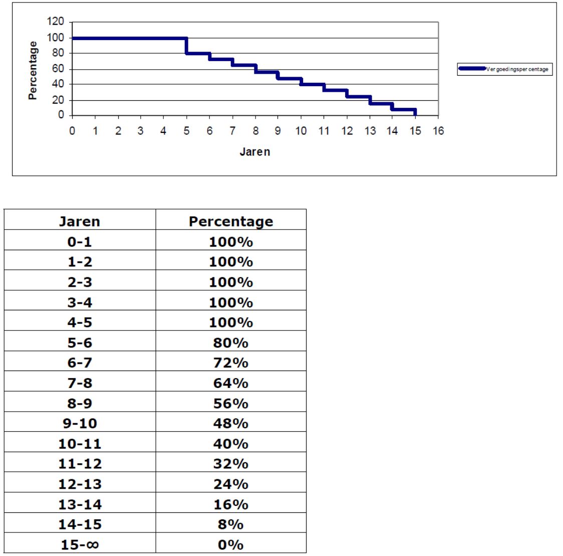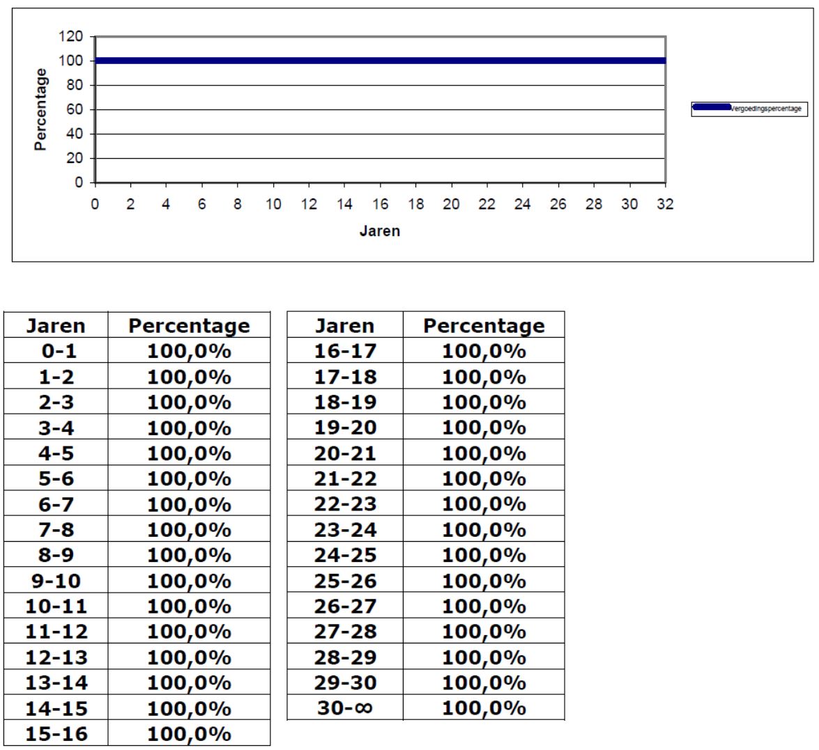 De nadeelcompensatie bedraagt 100% van het schadebedrag (zie bijlage 4), indien: