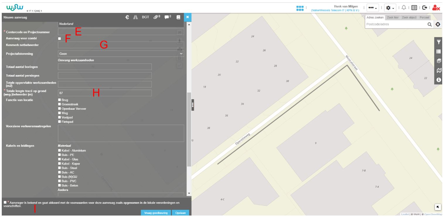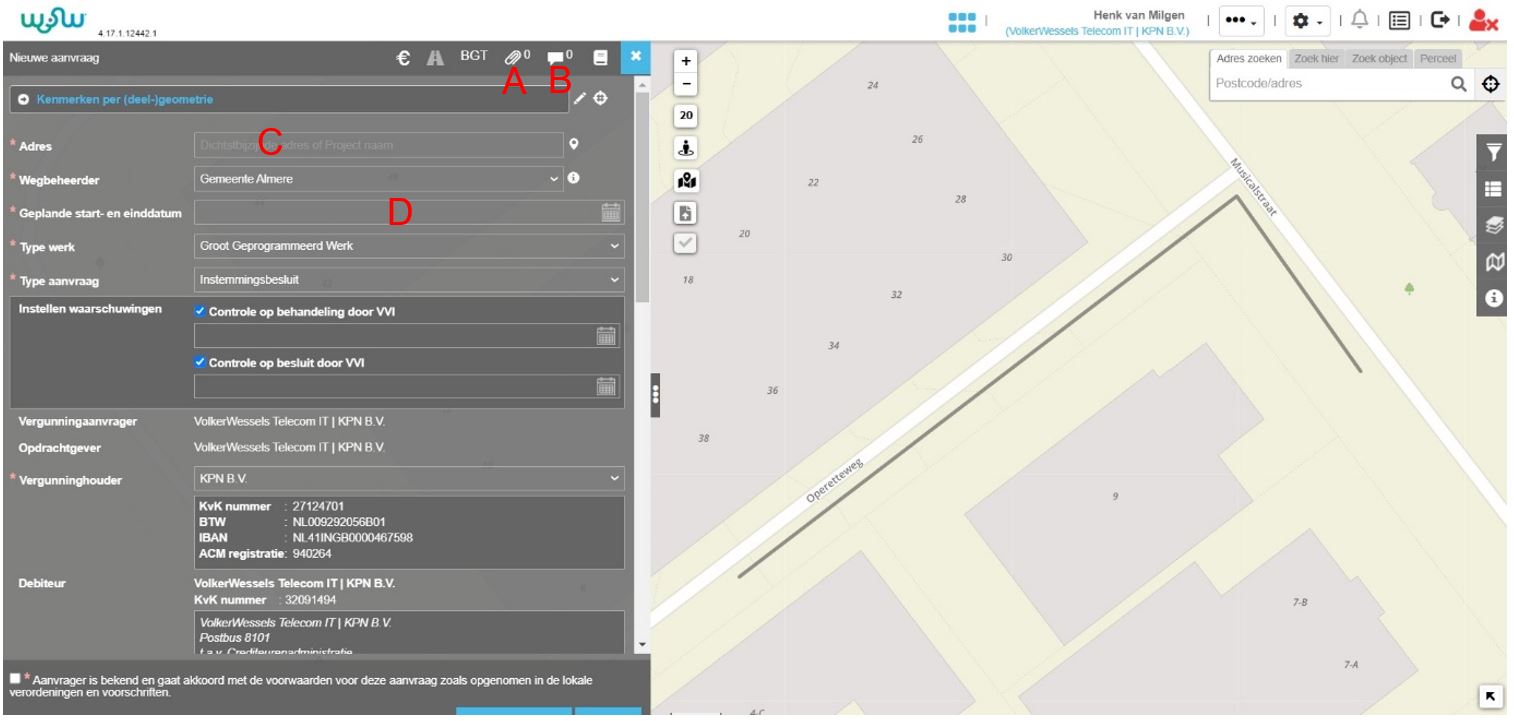 Na het accepteren van de voorwaarden kunt u de aanvraag opslaan of goedkeuring aanvragen bij de gemeente. Een opgeslagen aanvraag is niet te zien bij de gemeente. Vul daarnaast zoveel mogelijk gegevens in ook al zijn deze niet verplicht. Hoe vollediger de aanvraag is ingevuld hoe sneller de gemeente de aanvraag kan behandelen.
