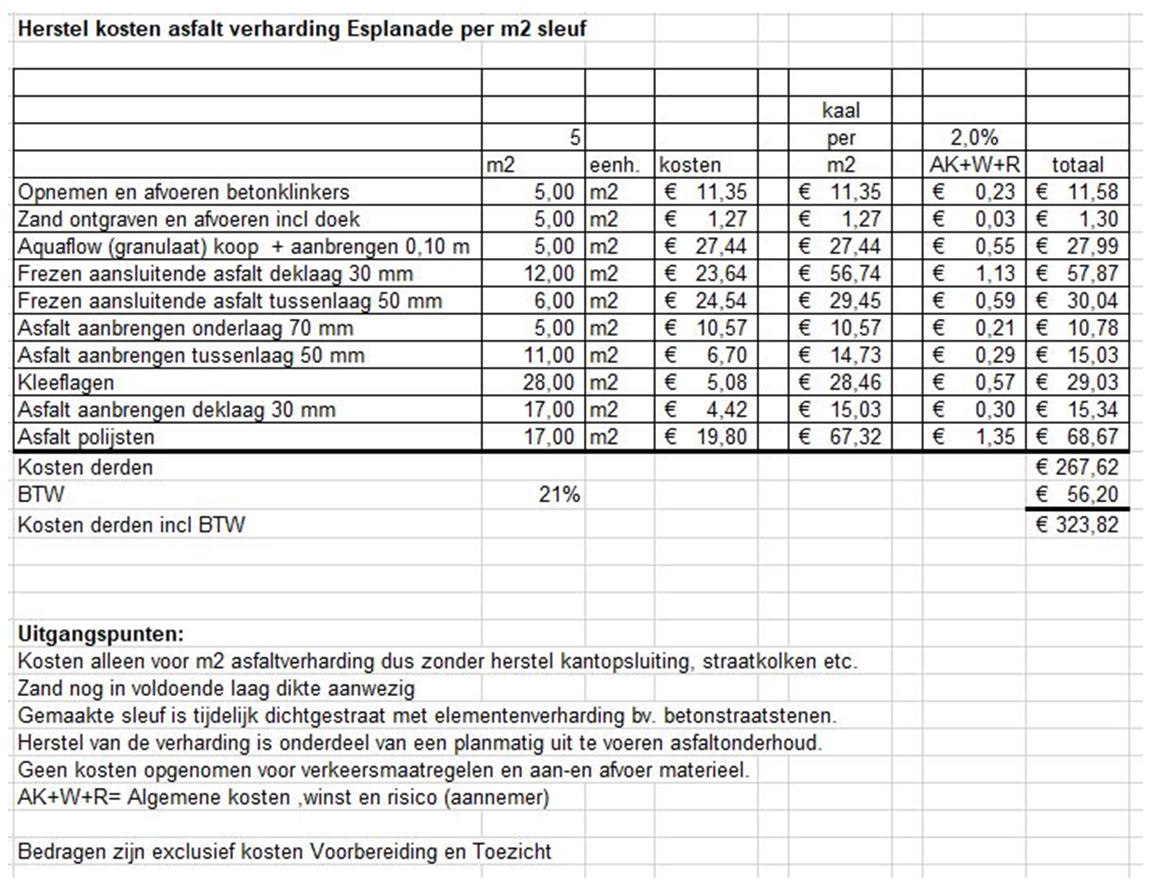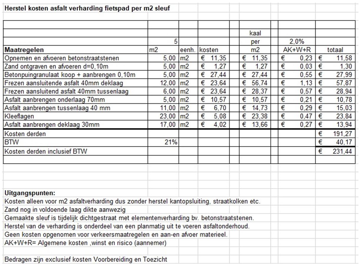 Binnen de gemeente Almere zijn, of worden op termijn, alle hoofdfietsroutes verbreed naar een breedte van 4 m. De verbreding vindt plaats met asfaltverharding. Bij noodzakelijk onderhoud aan kabels en/of leidingen en/of bij calamiteiten is het de netbeheerder toegestaan om in overleg met de toezichthouder K&L het asfalt van die fietsroutes open te (laten) breken. Tijdens het reguliere asfaltonderhoud zal het asfalt definitief hersteld worden door de gemeente Almere. Voor de verrekening van deze herstelkosten gelden separate afspraken.