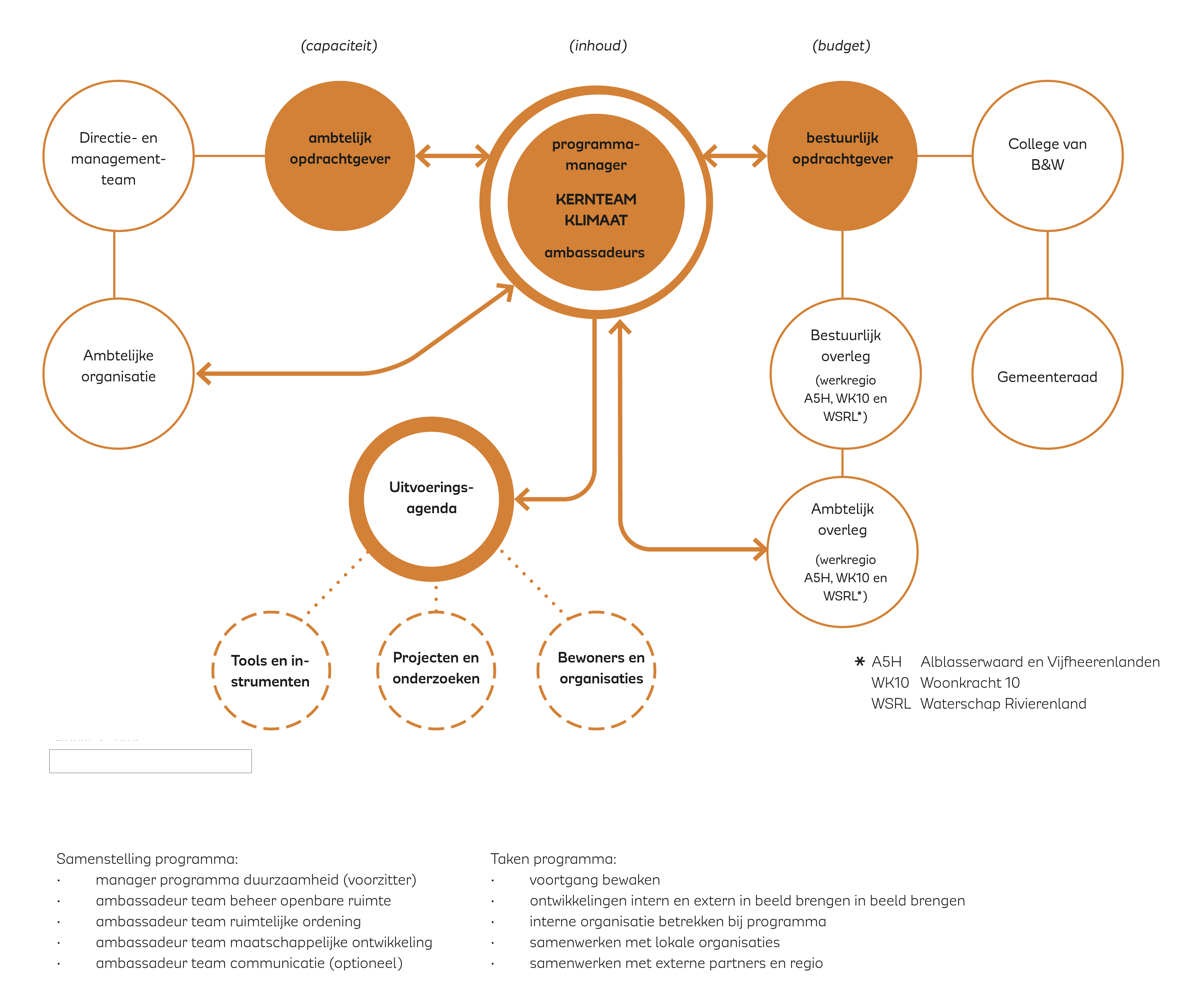Samenwerken met organisaties: samenwerken met het waterschap Rivierenland, Omgevingsdienst Zuid-Holland Zuid, de GGD en lokale zorgorganisaties is van belang. Zij hebben specifieke kennis op het gebied van klimaatadaptatie en kunnen ons hierbij ondersteunen;