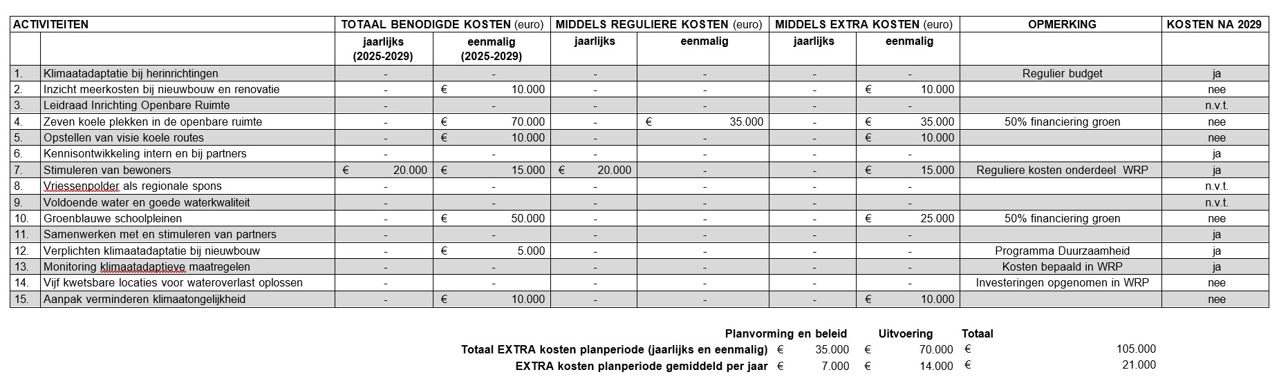 Dekking: 50% groeninvestering en 50% klimaatadaptatie