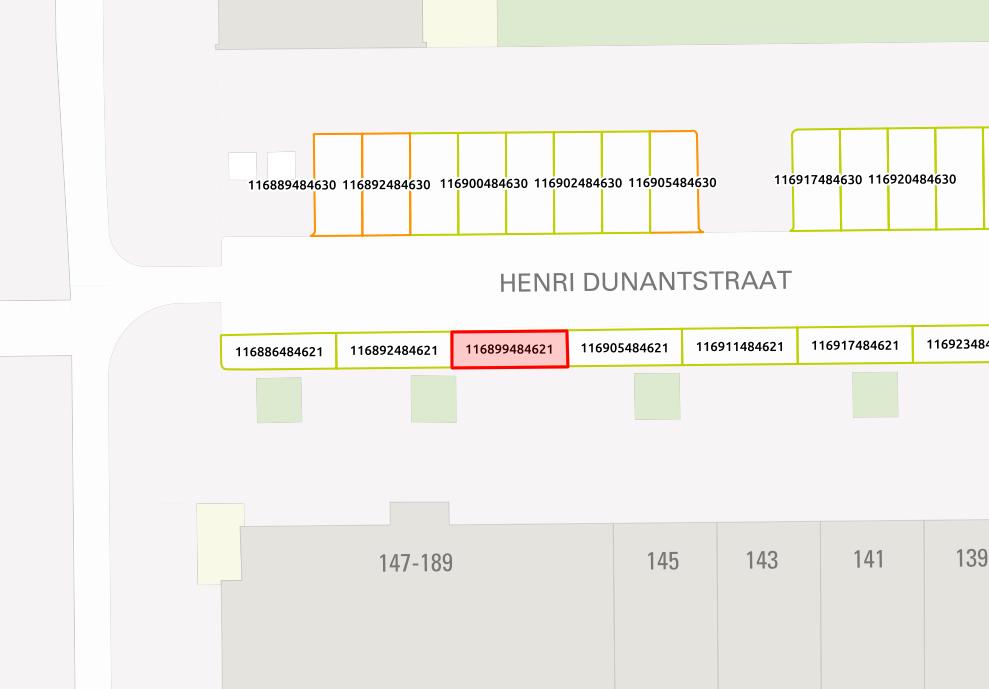ter hoogte van perceel Henri Dunantstraat 157 een gehandicaptenparkeerplaats op kenteken is gelegen;