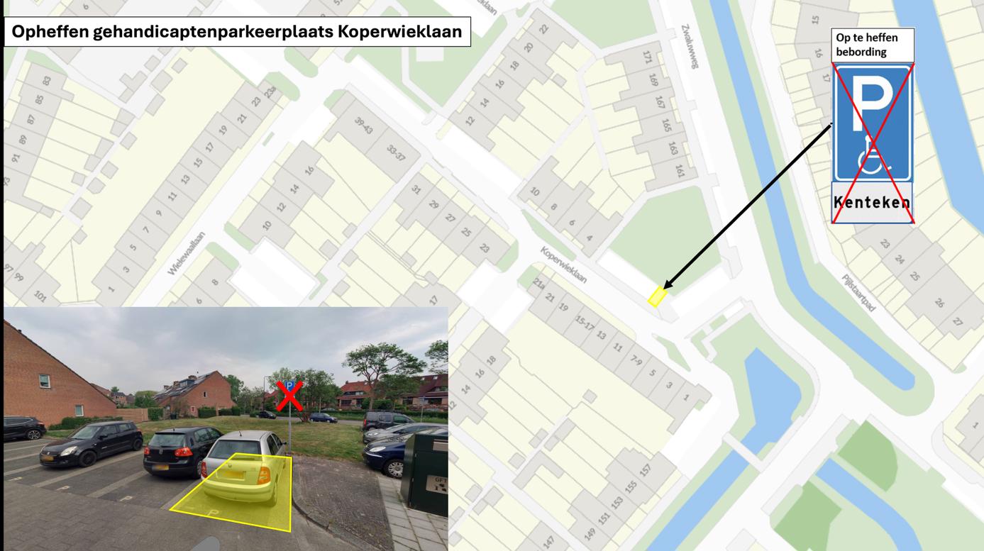 Verkeersbesluit - Opheffen gehandicaptenparkeerplaats op kenteken – Koperwieklaan 13, Voorschoten