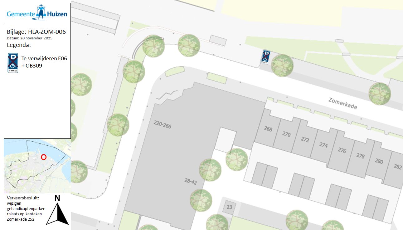 Verkeersbesluit gehandicaptenparkeerplaats verwijderen Zomerkade 252 te Huizen