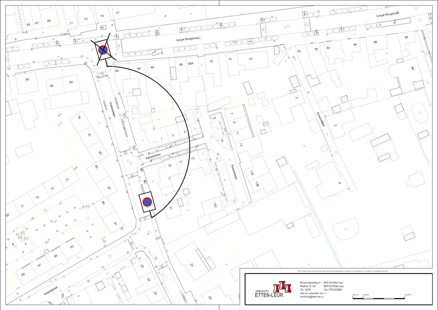 de Kasteellaan tussen de Lange Brugstraat en de Kapelstraat een breedte heeft van 5,0 meter;
