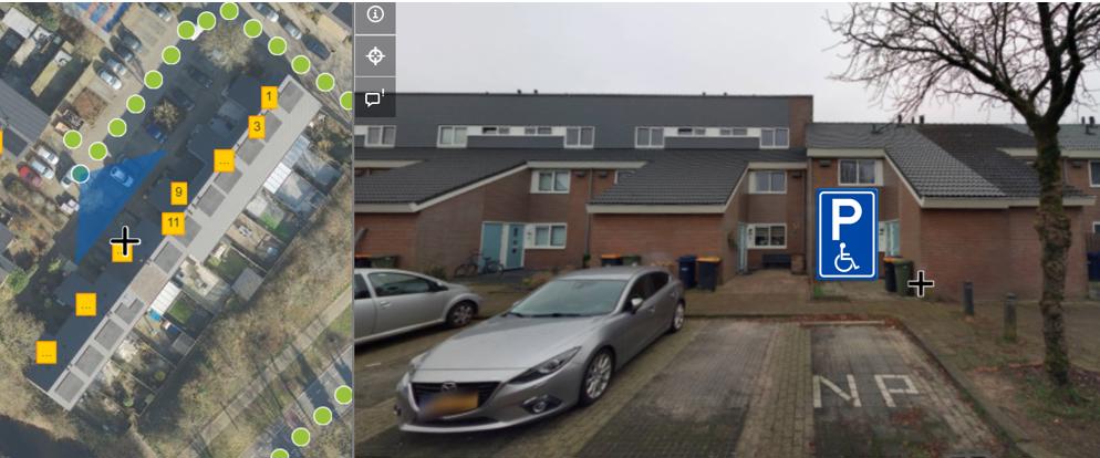 2. Tot het inrichten van een parkeerplaats voor de aanvrager door een kenteken gebonden gehandicaptenparkeerplaats te realiseren door middel van bord E6 uit Bijlage I van het RVV 1990 met onderbord van het kenteken. E.e.a conform onderstaande situatieschets.