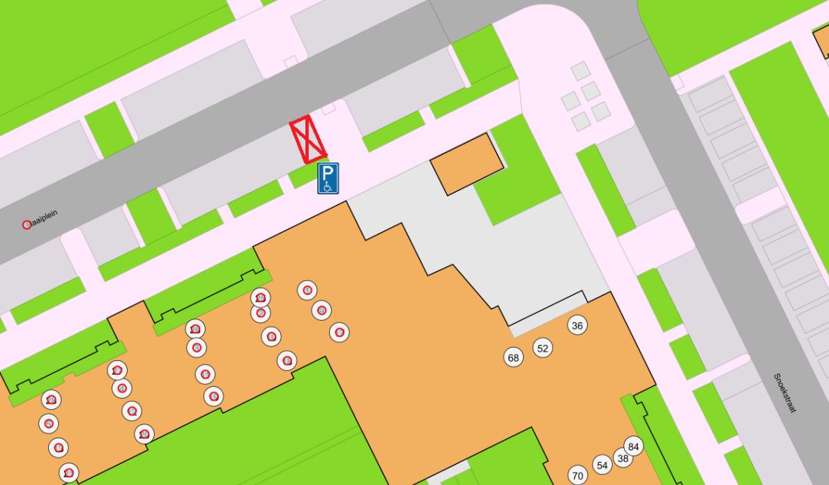 De afdeling Stadsruimte van de gemeente Almere heeft vanuit de afdeling Zorg & Welzijn een verzoek ontvangen voor het aanwijzen en inrichten van een gehandicaptenparkeerplaats op kenteken. De aanvraag voor de gehandicaptenparkeerplaats is ingediend en getoetst bij de afdeling Zorg & Welzijn. Na het toetsen van het recht op een gehandicaptenparkeerplaats heeft de desbetreffende wijkregisseur een plek aangewezen.