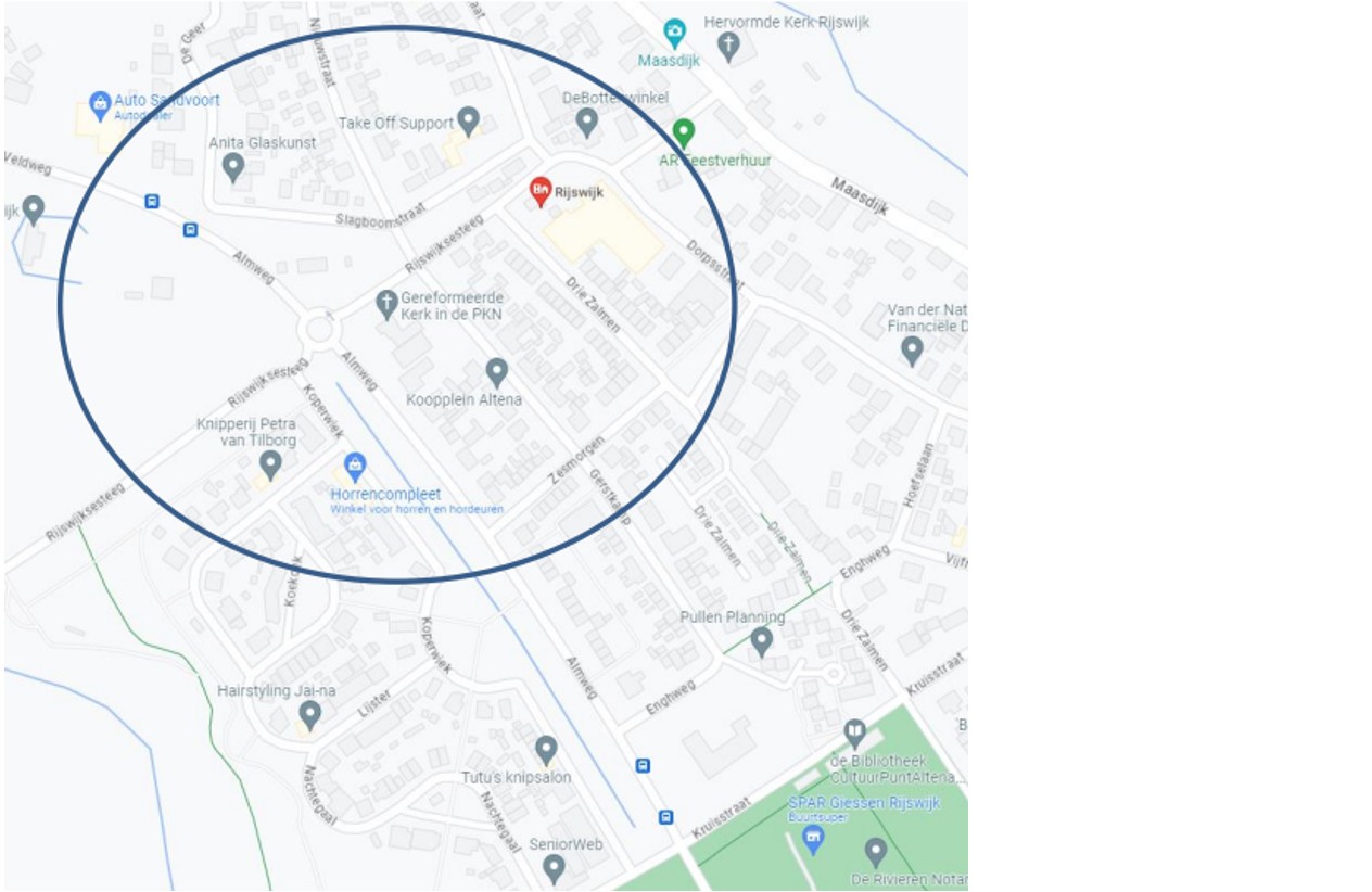 Het volgende gebied in Rijswijk aan te wijzen als gebied waar cameratoezicht plaatsvindt als bedoeld in artikel 2.77 van de APV Altena 2020: