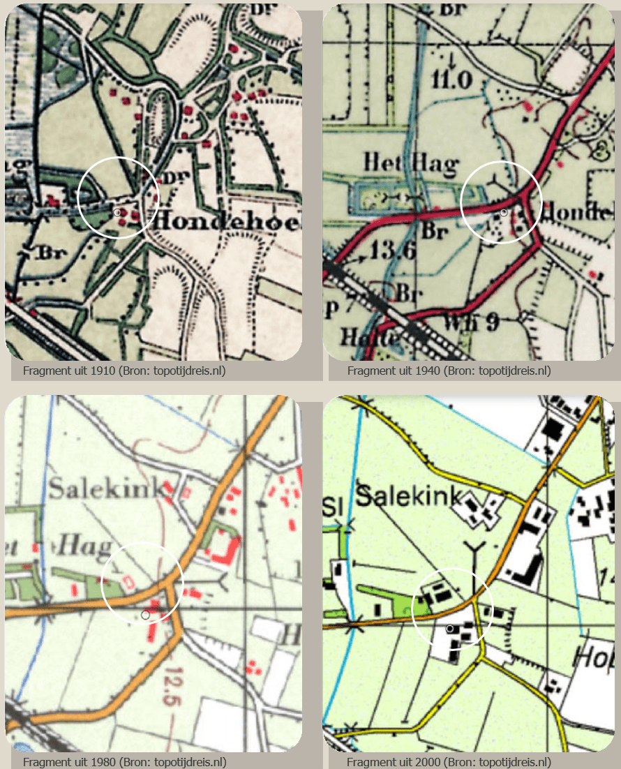 Het erf ligt in een van oorsprong zeer gevarieerd en kleinschalige rand rondom de grote es. Hoewel het gebied ingrijpend is veranderd door ontginningen, innovaties in de landbouw en de ontwikkeling van bebouwing is het landschap nog altijd goed herkenbaar. Het erf is al oud en verschijnt ver voor 1900 op kaarten. Het was een uitstekend gebied om te boeren. De hoge gronden werden ingezet voor het verbouwen van graansoorten en de nabij gelegen heide kon gebruikt worden in het voormalige potstal systeem. De heide werd in die stallen vermengd met mest en uiteindelijk uitgereden op de essen en kampen ter verbetering van de grond. Het gebied kende met name bomenrijen en wat houtsingels in een grillig patroon. Het waren talloze verbindingen met grillige wegen van erf naar erf. Een aantal bomenrijen zijn nog altijd goed herkenbaar met hoge cultuurhistorische en beeldbepalende waarden. De belangrijkste soort in het gebied is zomereik. De meeste beplantingen zijn gelegen langs functionele randen zoals wegen. Dat is wellicht een reden dat nog veel houtopstanden behouden zijn gebleven ondanks ruilverkavelingen en de modernisering in de landbouw. Een ontwikkeling dient bij te dragen aan het behoud, herstel en/of de herkenbaarheid daarvan zover dat mogelijk is.