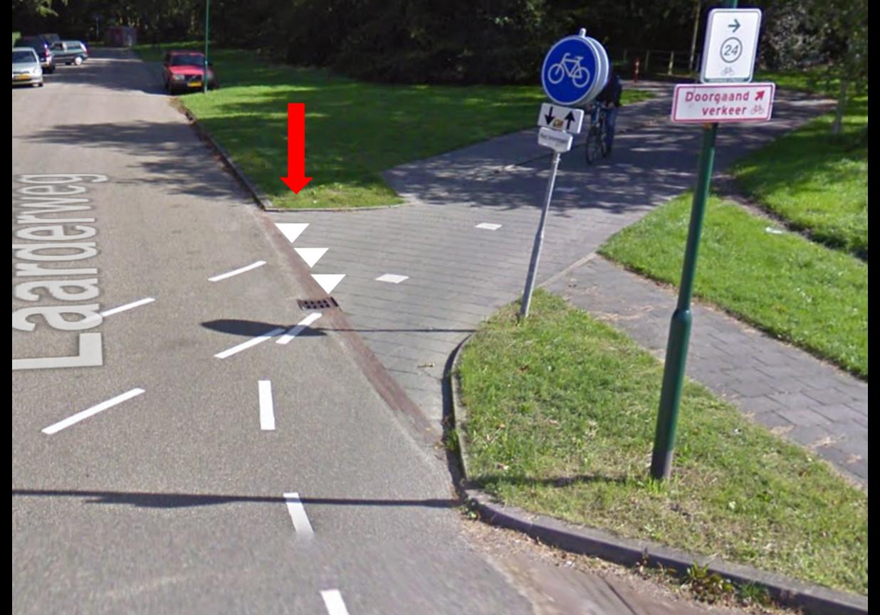 Het instellen van een voorrangsregeling door het aanbrengen van de wegmarkering haaientanden (voorrangsdriehoeken) als bedoeld in bijlage 2 van het RVV 1990 ter hoogte van de Laarderweg, waarmee bestuurders worden verplicht voorrang te verlenen.