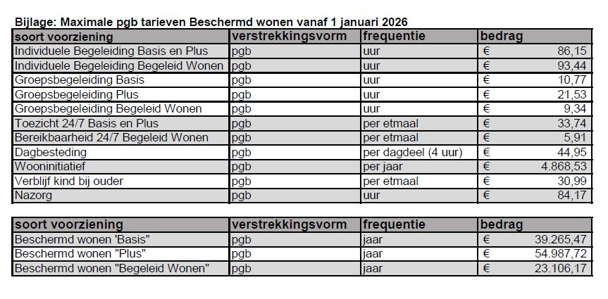 Maximale pgb tarieven Beschermd wonen vanaf 01 januari 2026