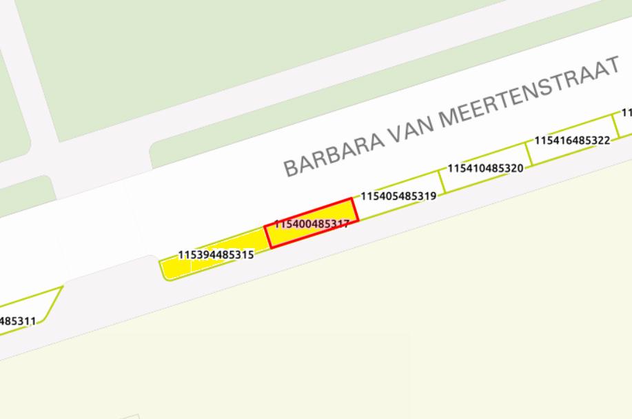 Twee parkeerplaatsen ter hoogte van perceel Barbara van Meertenstraat 28 (parkeervaknummers 115394485315 en 115400485317) aan te wijzen voor het opladen van elektrische voertuigen door het plaatsen van een bord conform model E8c van Bijlage I van het RVV 1990, gecombineerd met onderbord OB504 met daarop afgebeeld twee pijlen op een hoek van 45° (RVV 1990).