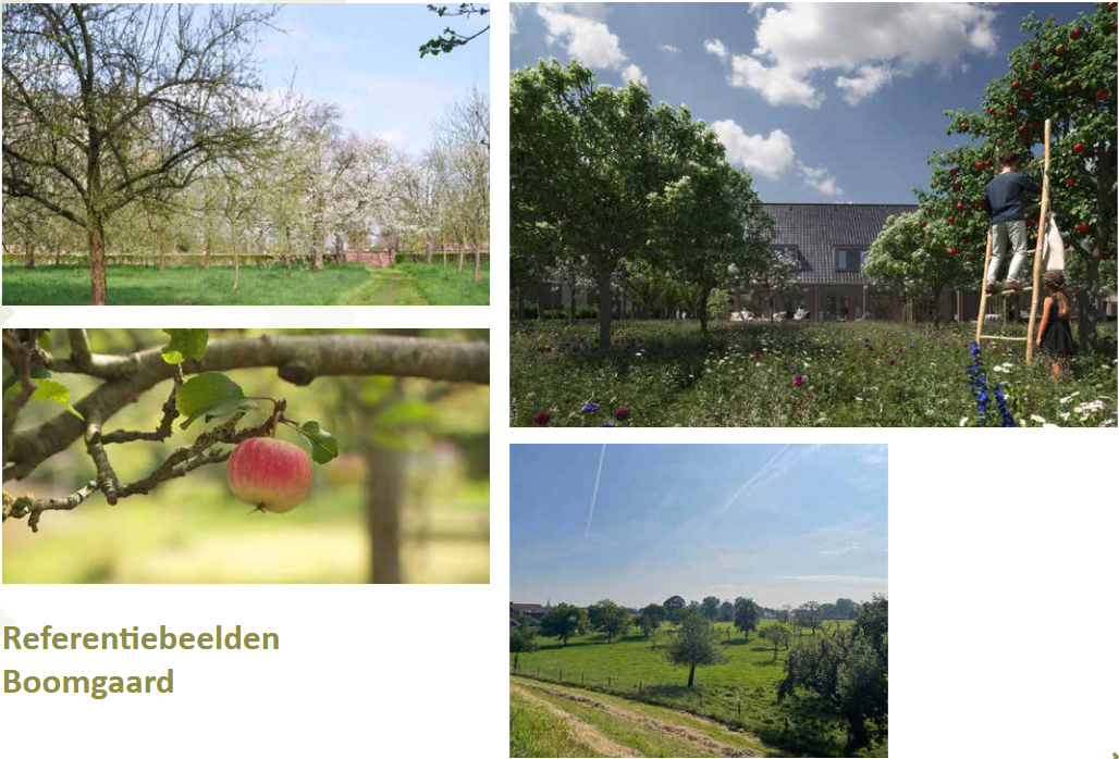 Inheemse beplanting: Streekeigen bomen, struiken en kruiden worden aangeplant, zoals zomereik, wilg, walnoot en oude fruitrassen (hoogstam). Dit sluit aan bij de oorspronkelijke landschapselementen en bevordert de biodiversiteit.