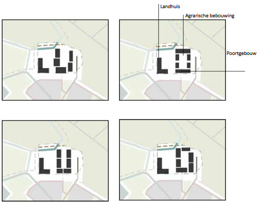 Binnen het beeldkwaliteitsplan wordt voor de bebouwing een onderscheid gemaakt tussen het wonen gecombineerd met maatschappelijke voorzieningen in het landhuis en wonen aan het boerenerf.