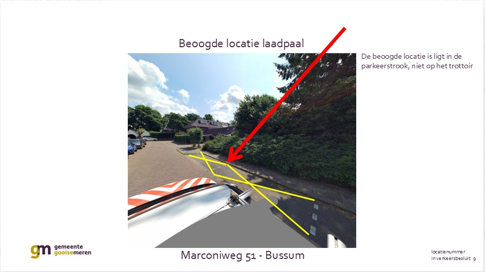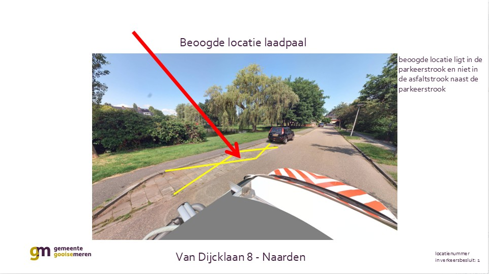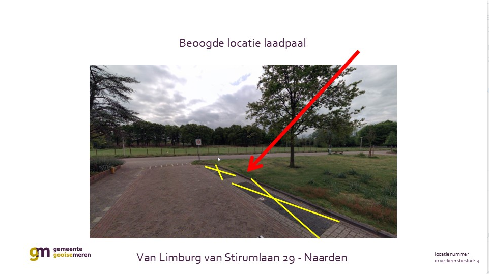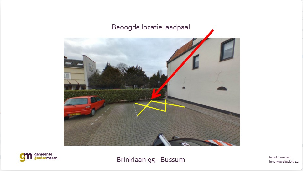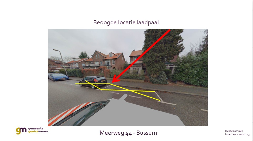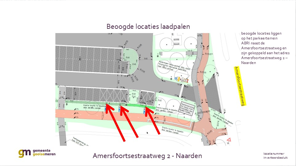 De gemeente Gooise Meren heeft naar aanleiding van verzoeken van (toekomstige) e-rijders (vraaggestuurd laden), op basis van het gebruik van bestaande laadpalen (datagestuurd laden) en op eigen initiatief (aanbodgestuurd laden) besloten om op een aantal locaties in de openbare ruimte parkeerplaatsen voor het laden van voertuigen te reserveren. Per beoogde locatie worden twee parkeerplaatsen voor het laden gereserveerd. Het laden vindt plaats door middel van een laadpaal.